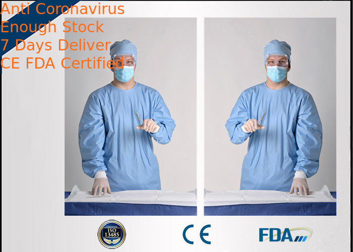মেডিকেল সুরক্ষা সুরক্ষামূলক কক্ষের জন্য তরল প্রতিরোধী ডিসপোজযোগ্য সার্জিকাল গাউন